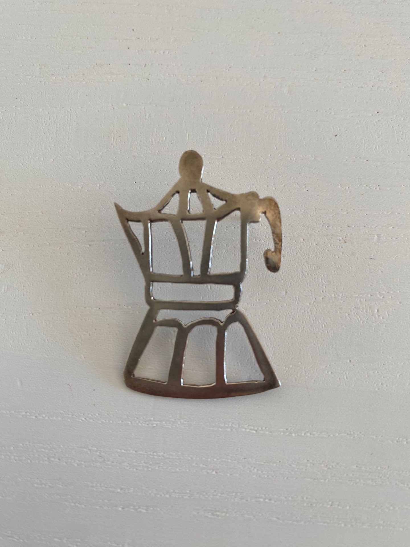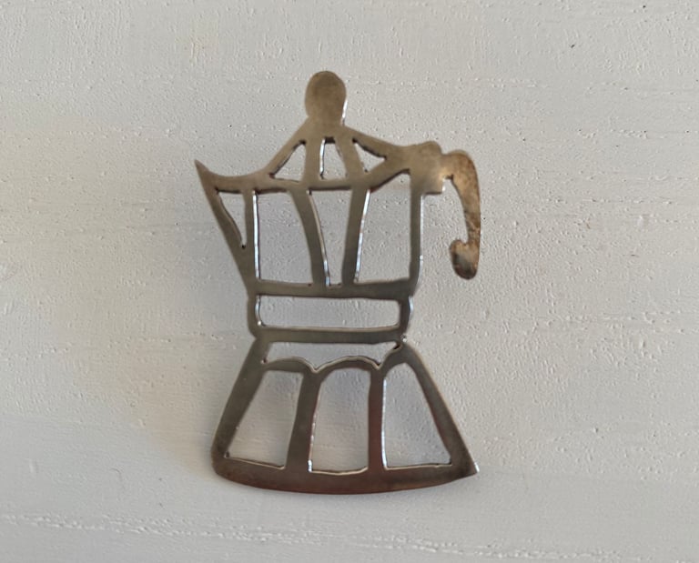 Formas orgánicas y fluidas, como si el metal se hubiera derretido un poco, atrapando el instante en que el calor del café se mezcla con el del licor.